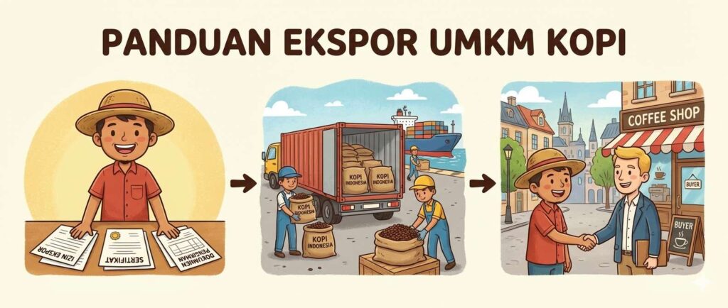Ekspor kopi menjadi salah satu jalan besar bagi UMKM kopi di Indonesia untuk meningkatkan pendapatan dan memperluas pasar. Namun, proses ekspor tidak selalu sederhana — diperlukan persiapan administrasi, kualitas produk, dan strategi bisnis yang matang. Dalam panduan ini, saya membahas secara mendalam setiap langkah praktis, termasuk persiapan dokumen, pemilihan buyer, strategi pengiriman, hingga tips agar ekspor UMKM berjalan lancar.